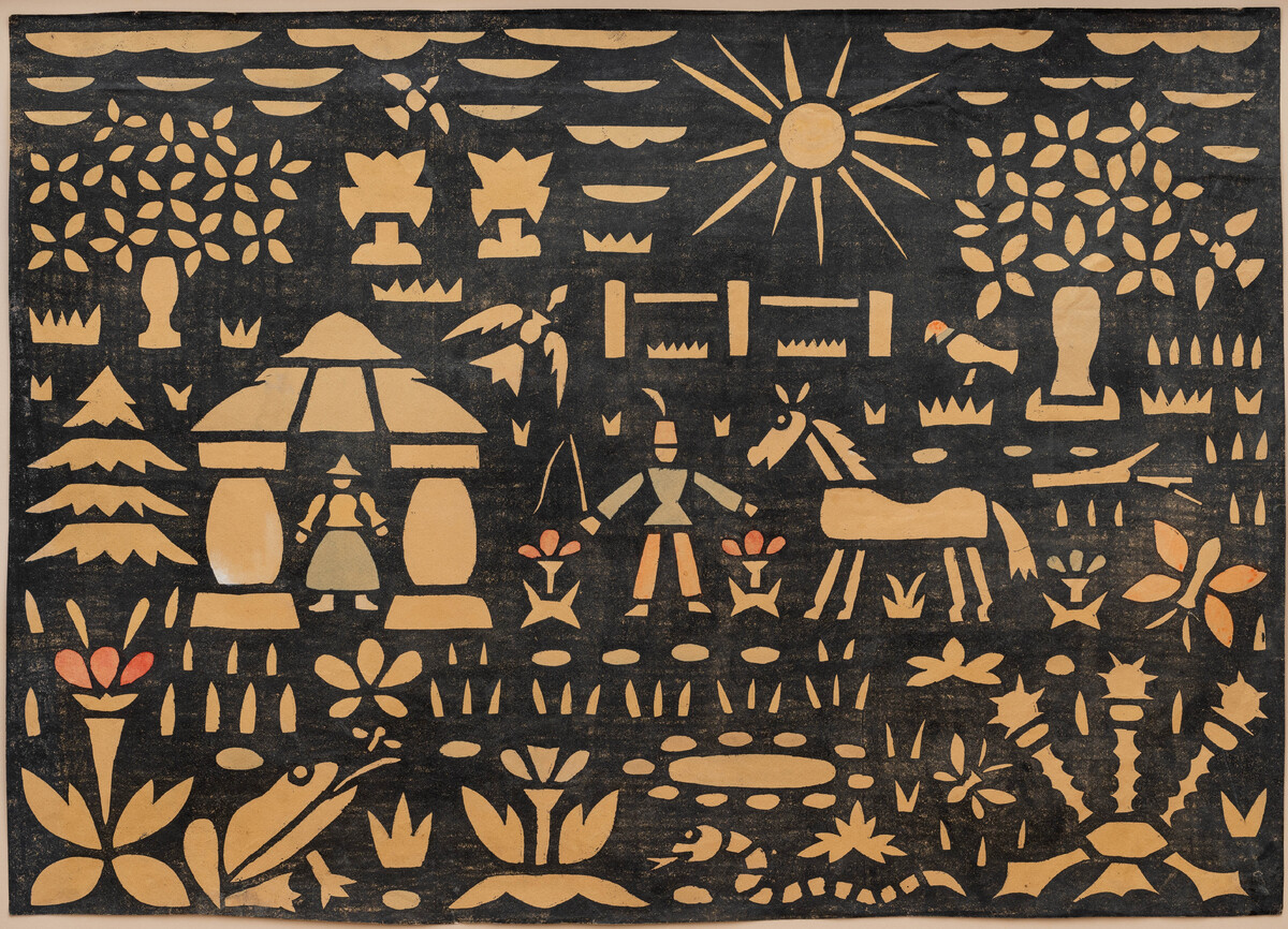 Woodcut and watercolor