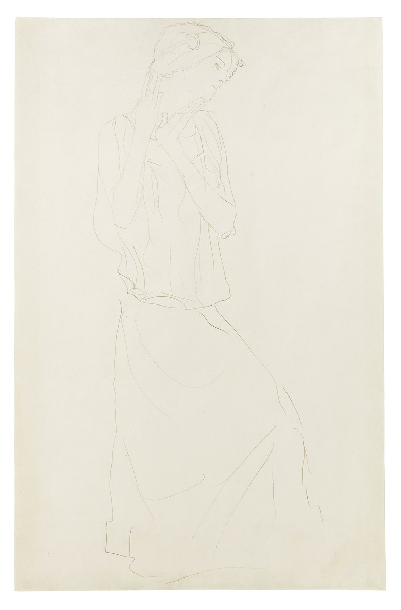 Stehend mit erhobenen Unterarmen nach rechts, Studie für die Tänzerin im Stoclet Frieze "Die Erwartung"