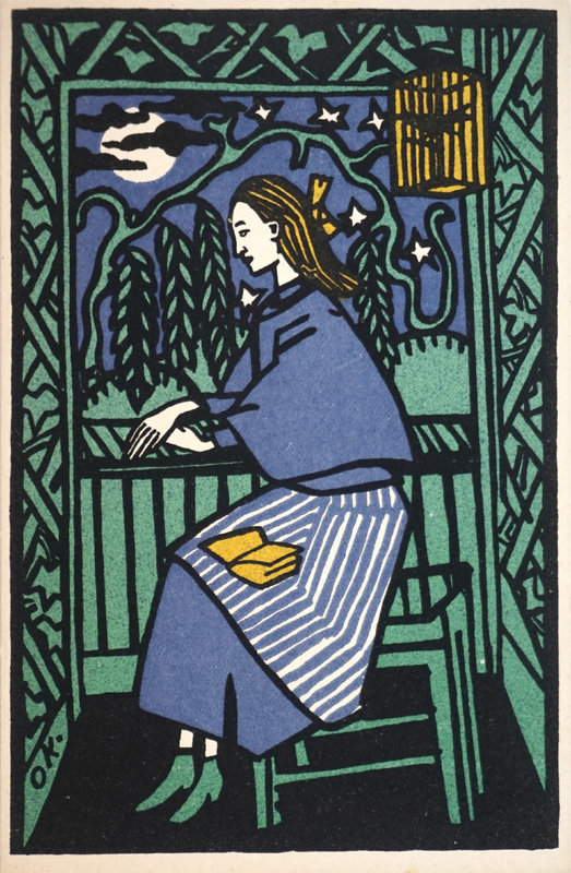 Girl in a bay window, Wiener Werkstätte post card no. 152
