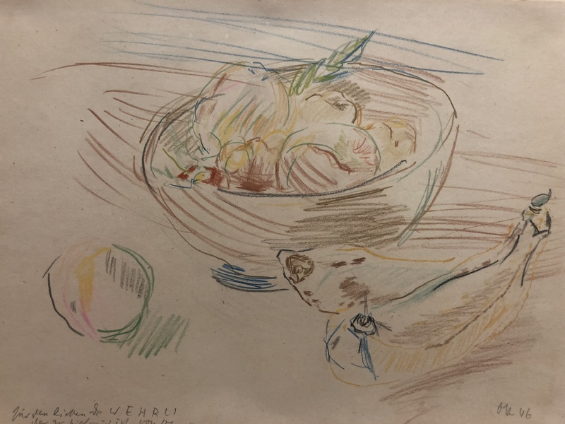 Buntstift auf Papier. U.r. mit Bleistift mgr. und dat. "OK 46", u.l. mit Widmung nochmals mgr. und dat. "OK 47".